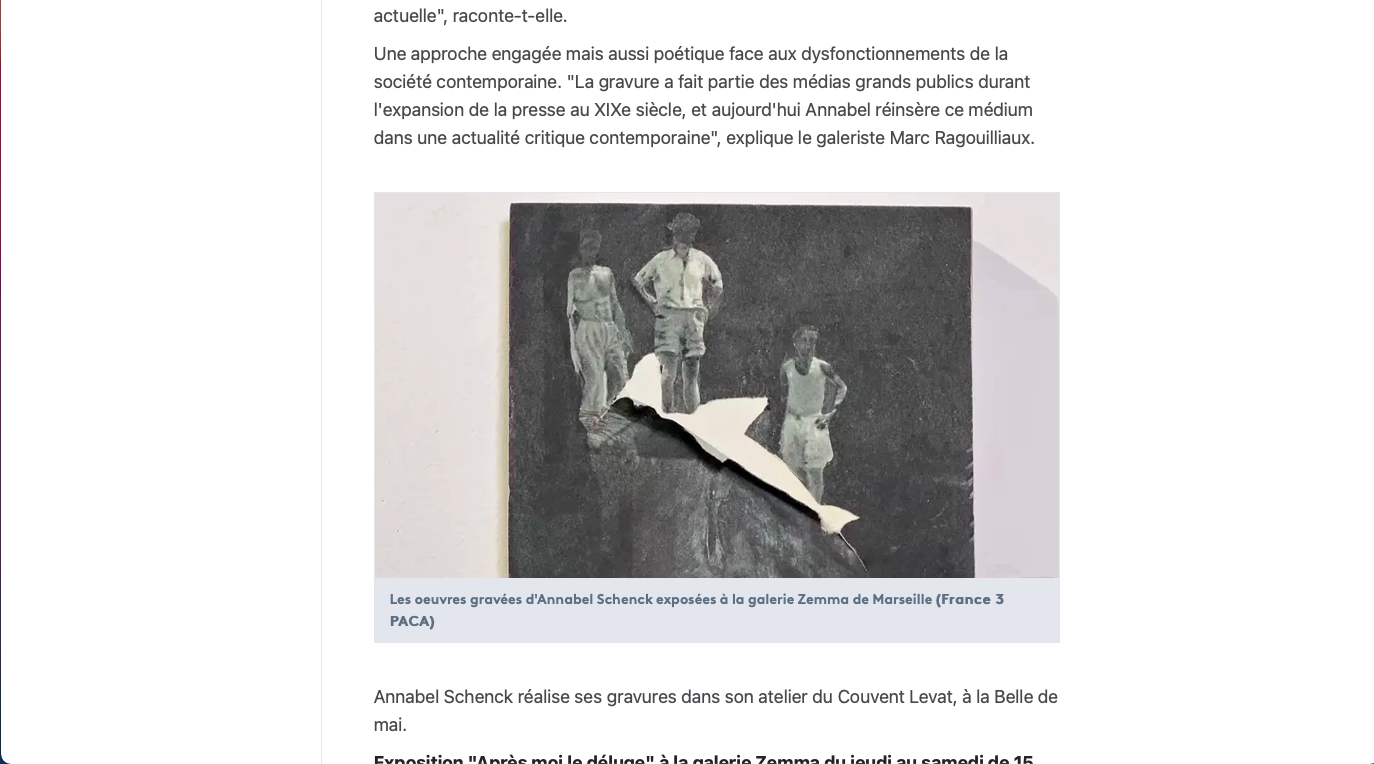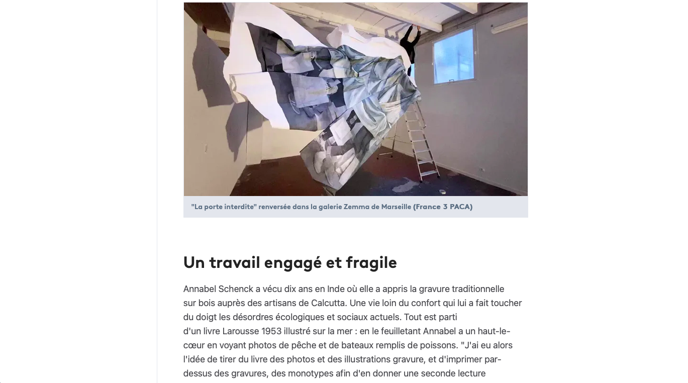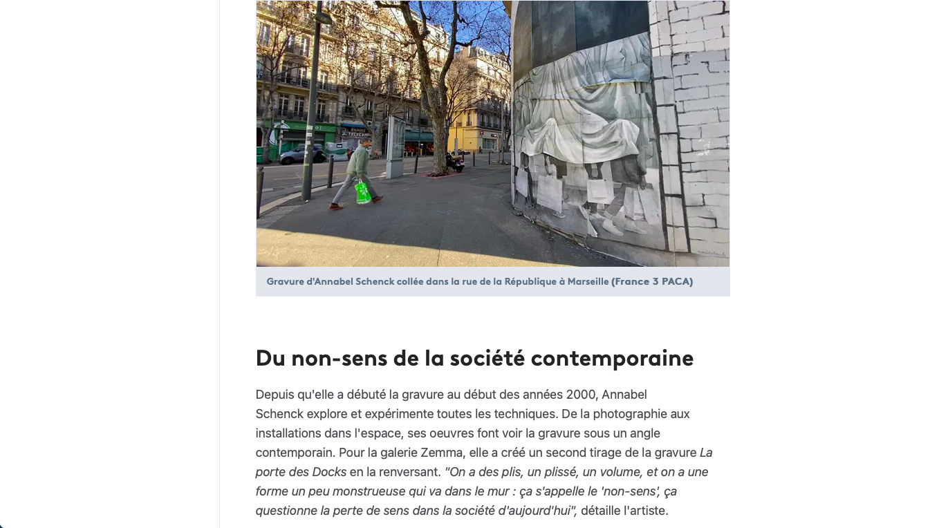 PLASTICIENNE ET GRAVEUSE FRANÇAISE, ANNABEL SCHENCK DEVELOPPE UNE PRATIQUE DE L'ESTAMPE CARACTÉRISÉE PAR DES ÉCHELLES INHABITUELLES POUR L'ŒUVRE GRAVÉE, LA SPACIALISATION DE L'IMAGE ET LA VOLONTÉ DE TRAVAILLER IN SITU.