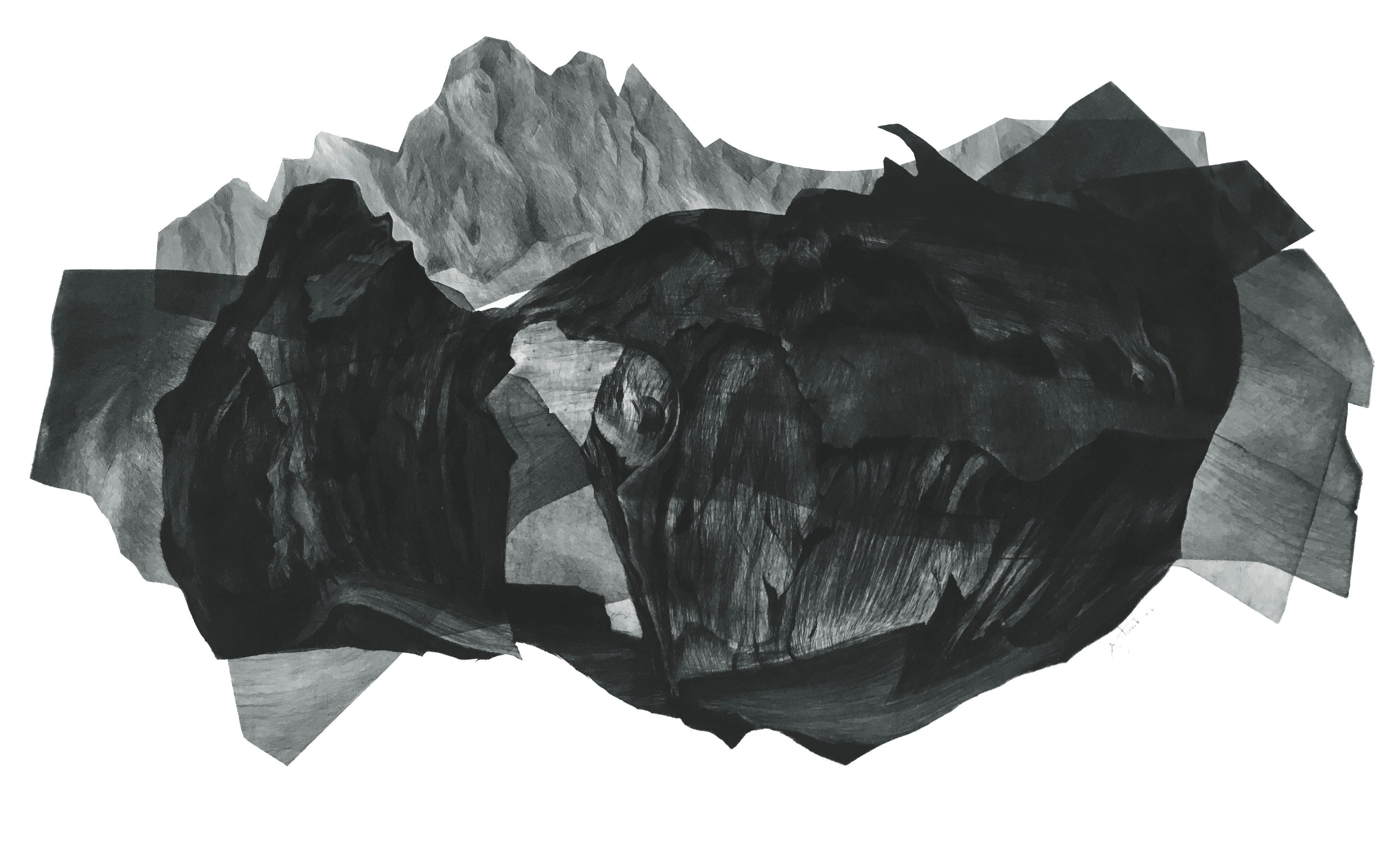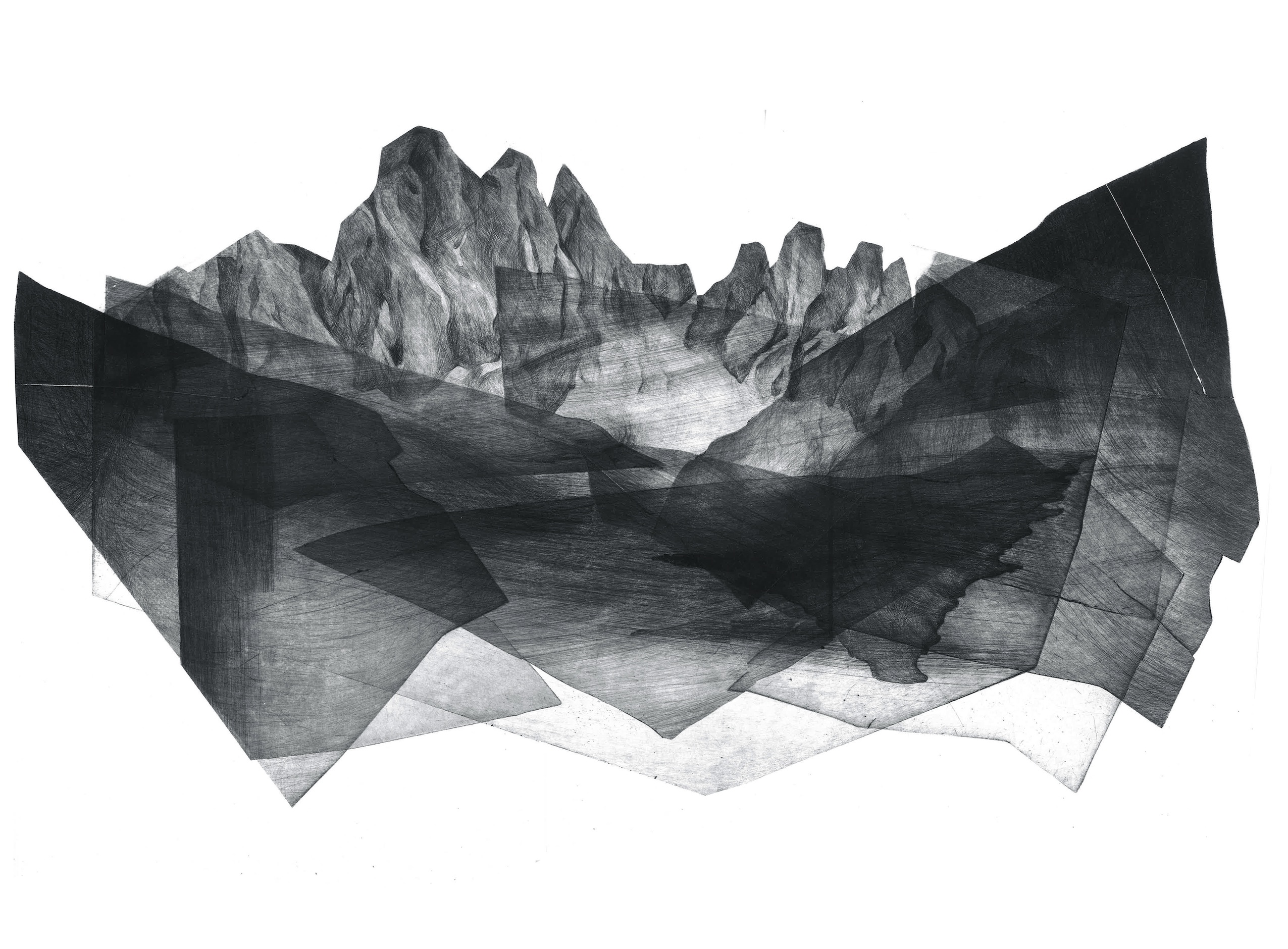 Rock, water and ice, pointe sèche sur papier Fabriano, Epreuve d’artiste, 56 x 76 cm I 2017