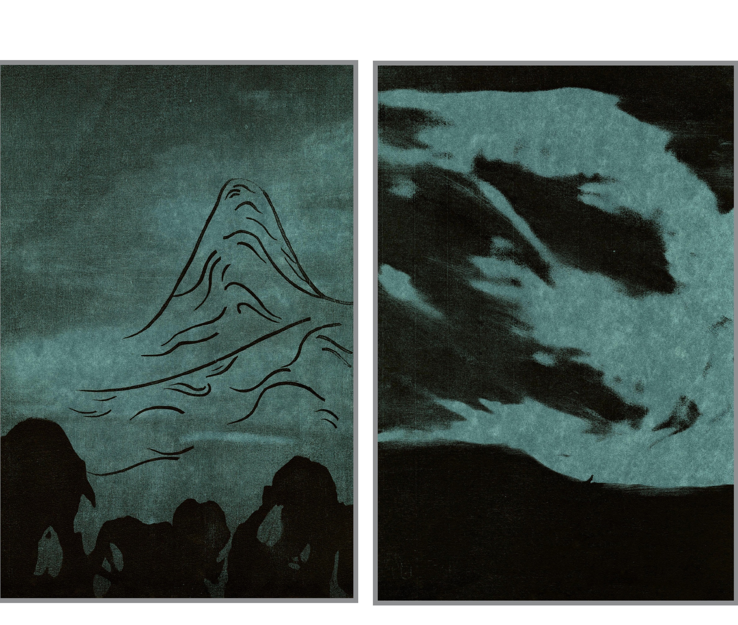 Tchik Jroulns I Livre réalisé après la réalisation du projet Edition Project au Cachemire indien. Gravures sur bois, textes gravés et sérignaphie sur papier Ingres Hahnemüehle. Imprimé en 2 exemplaires dans l'atelier gravure de l'ESAD. 48 pages, 40 x 28 cm, 2010