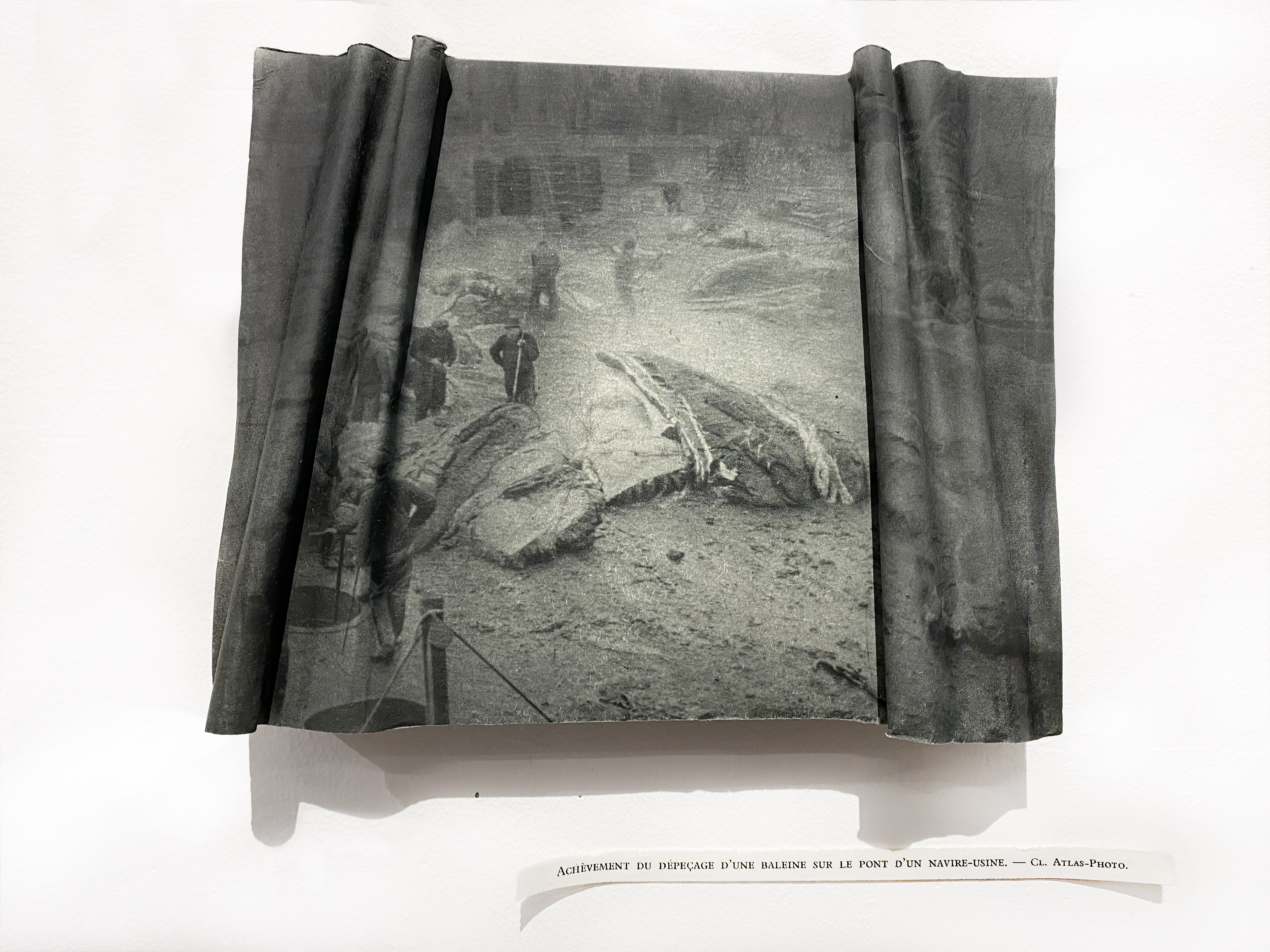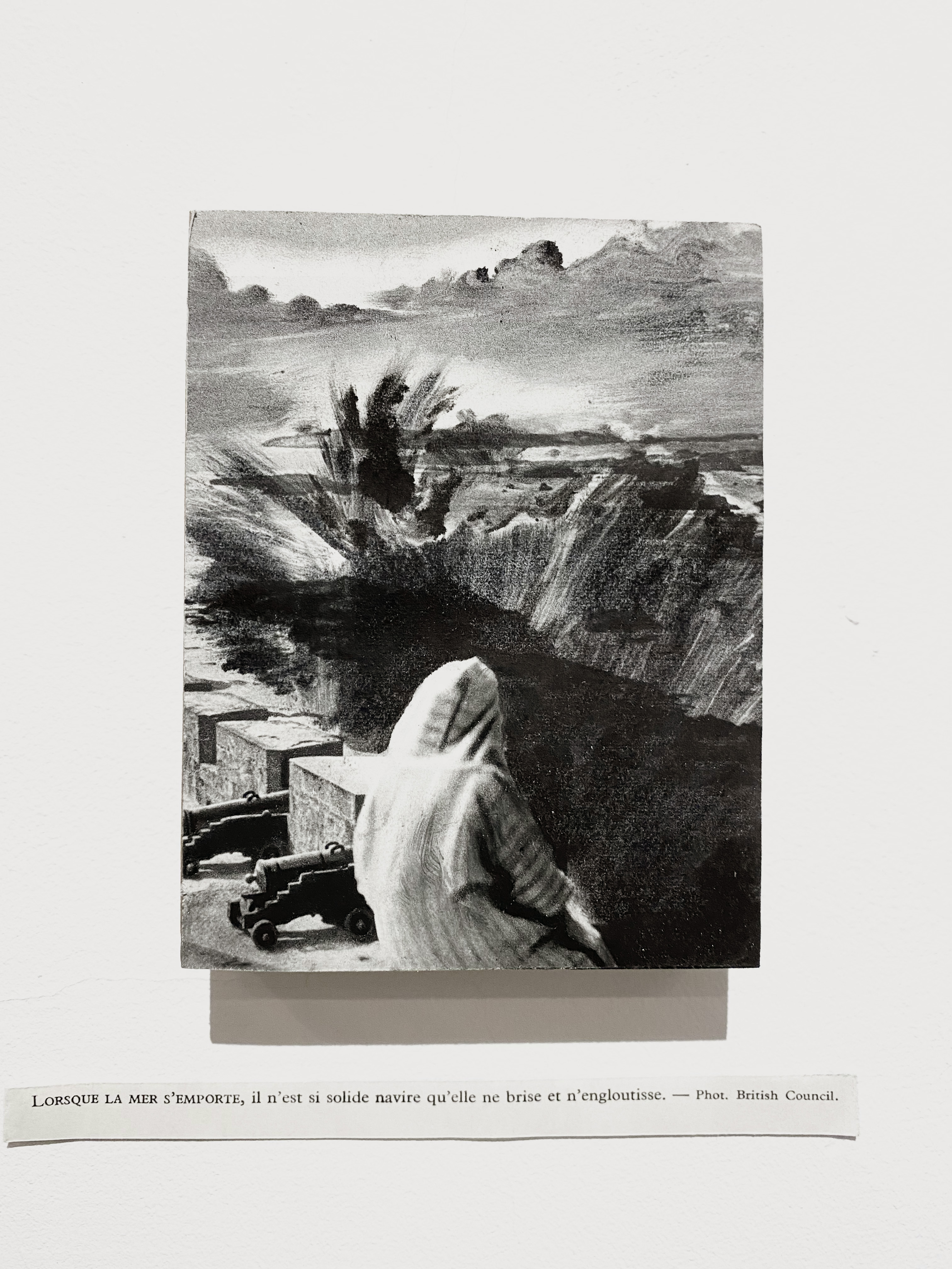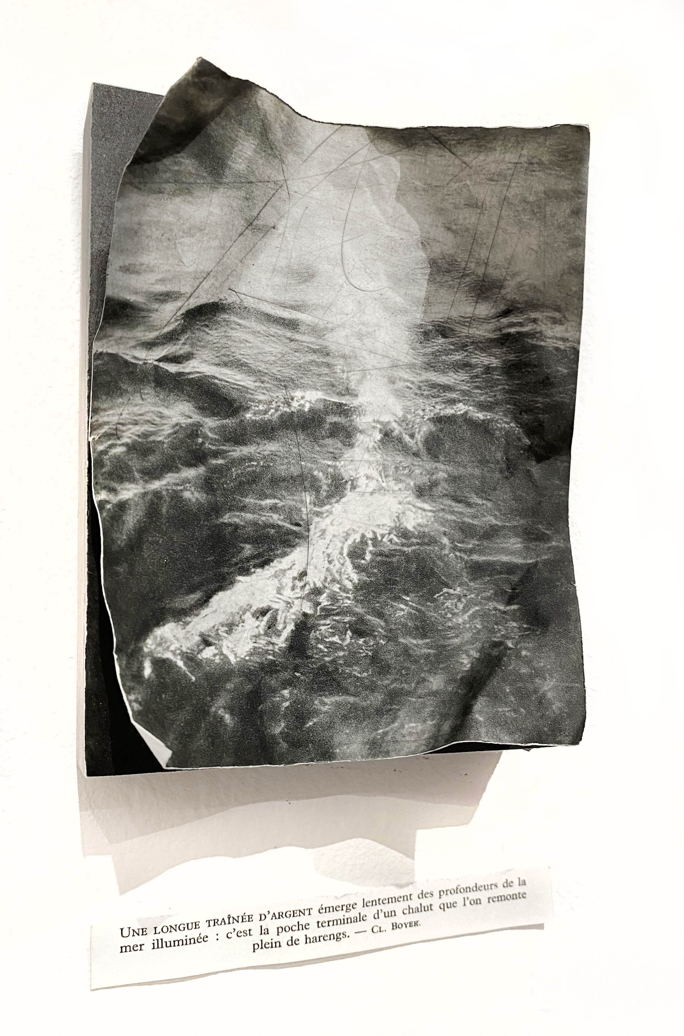 "Urgence d’espérer », série de 17 gravures à la pointe sèche et monotype sur des photographies tirées du livre "La mer », Larousse, 1951. Dimensions variables, 2021