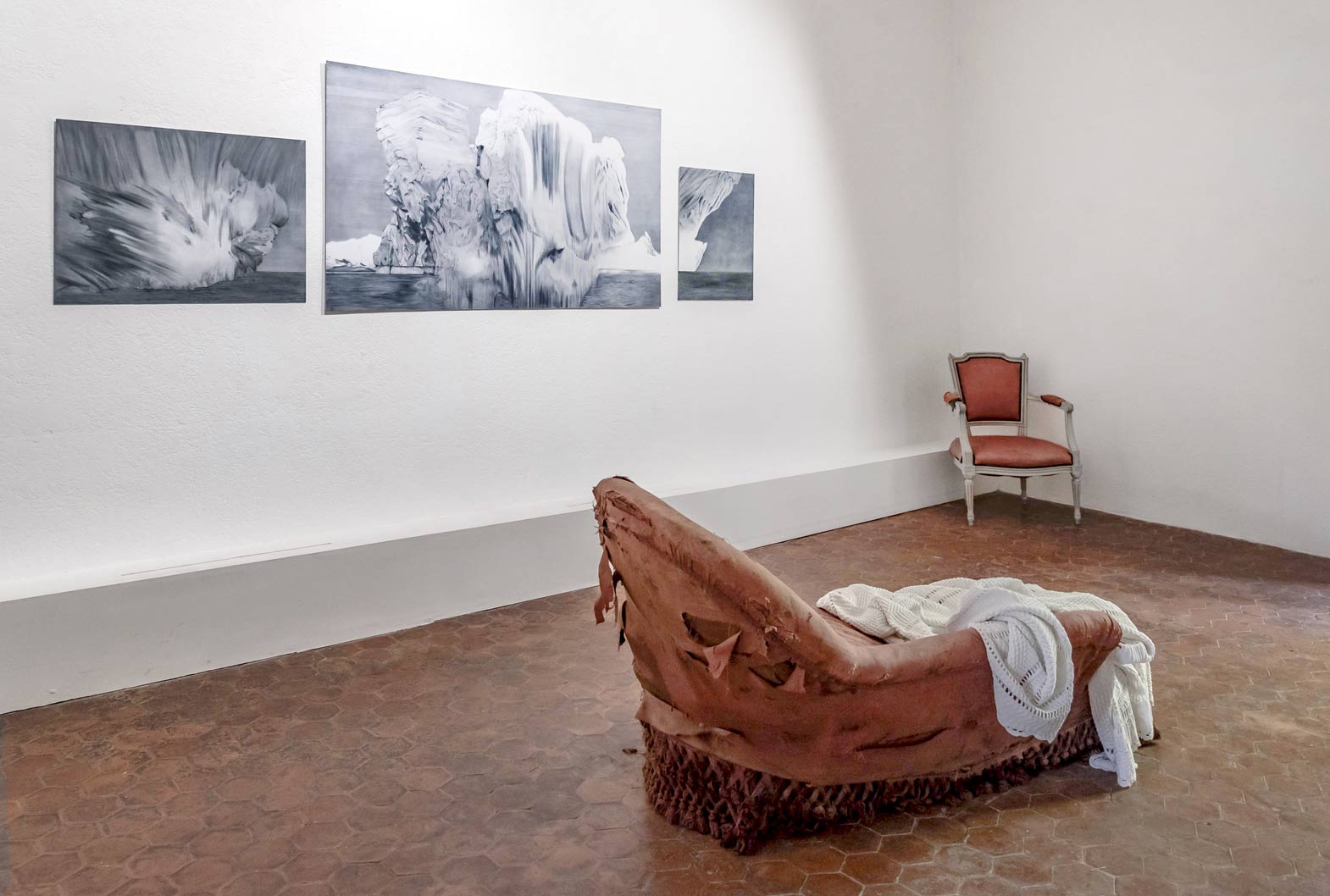 La fragilité du monde (triptyque) 2023. Gravure à la pointe sèche et photographie sur papier Fabriano, 150 x 100 x 0,3 cm